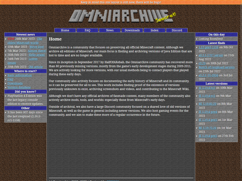 I've been busy at work, and in some of my free time I have reworked the Omniarchive