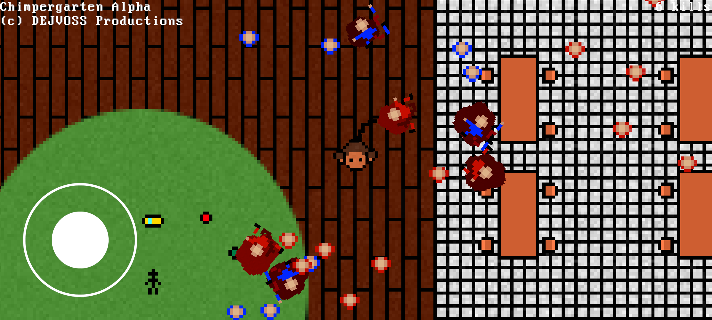 I've recently visited a facility with a large touch-screen TV, and wanted to play Chimpergarten on it, though there was no way to control le monkey. That's why I'll be releasing an update later this week with an option to enable touch controls (joystick = move; buttons = attack / pick up). You'll be able to enable those in a new settings screen on both the windows and webgl versions. I might even compile one for Android for the lolz (not putting it on any scummy app store, it will be a plain old apk download). I should probably also include some how to play screen, and I'll ask my texture artist Honza about making more levels. So yeah, that's probably all for now, see you very Soon(tm) again with the update! ~D